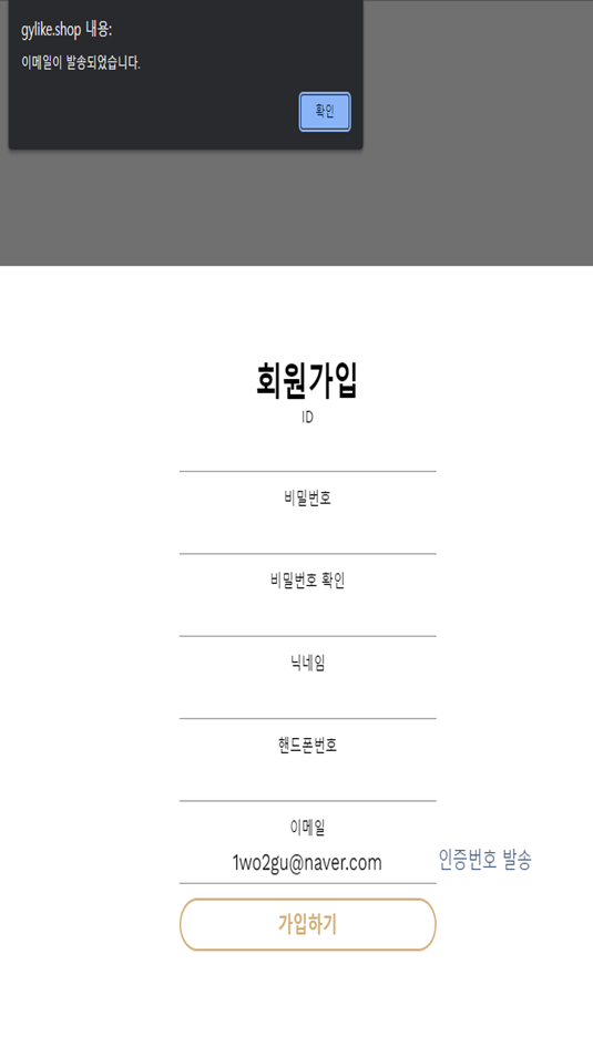 1.이메일 인증버튼 클릭시 이메일 발송 알럿창이 3초 이상있다가 나타남