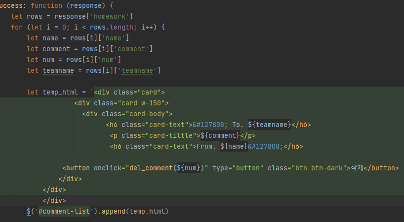 요건 서버에서 받아오는 teamname이 댓글을 보여주는 클라에 어떻게 적용되나 ~ 걍 for문에 추가시켜주면된다..!