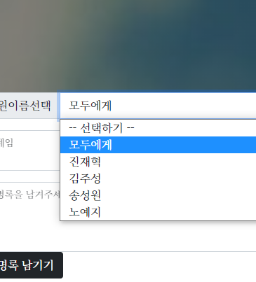추가로.. 팀원의 이름을 선택하지 않으면 방명록을 작성할 수 없게..
