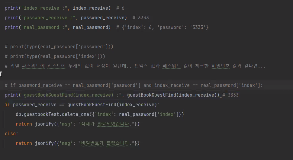 추가로 구현해보고싶은건...아이디와 비번입력해서....비번이 일치해야만 삭제가 가능하게 하는것..!