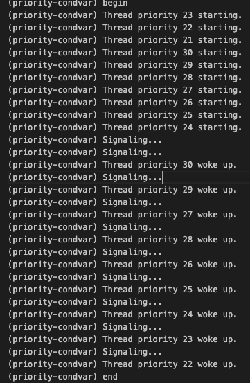priority conditon variable 테스트중 테스트 출력이 한칸씩 밀리는 상황이 발생했다!