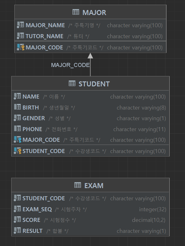걍 따라하는 중 딸각 선생님이 그립다... 두 사진이 뭔 차이냐 EXAM이 STUDENT와 관계를 맺고 있냐 없냐 차이